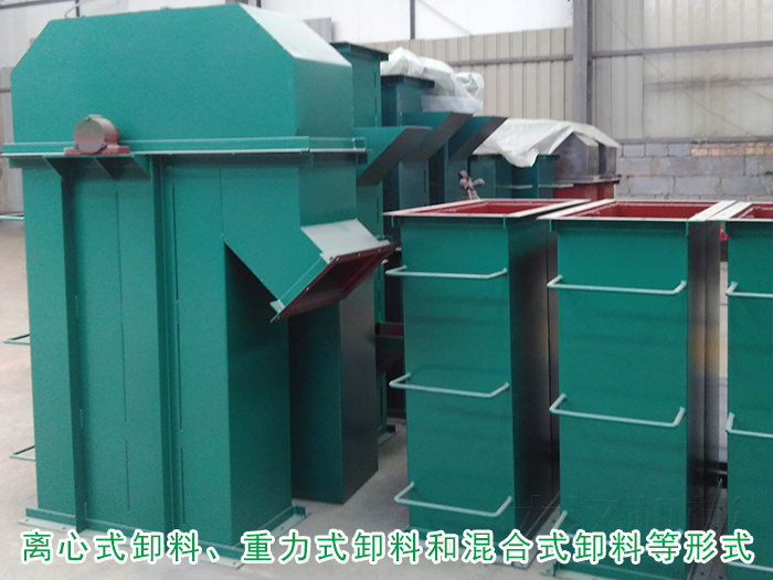 離心式卸(xiè)料的鬥速較快,適(shì)用於輸送粉狀、粒狀、小塊狀等磨琢(zhuó)性小的物料;重力式卸(xiè)料的鬥速較慢,適用於輸送塊狀(zhuàng)的,比重較(jiào)大的,磨琢性(xìng)大(dà)的物料,如石灰石、熟料等。