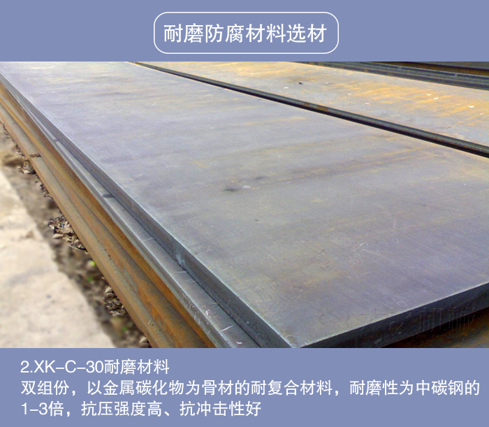 雙組份,以金屬碳化物為骨材的耐複合(hé)材料,耐磨性為中碳鋼的1-3倍,抗壓強度高、抗衝擊性好。用於3mm以(yǐ)下粒(lì)度過流部件修複及大麵積預途。如浮選槽、攪(jiǎo)拌(bàn)桶,葉片(piàn)等。
