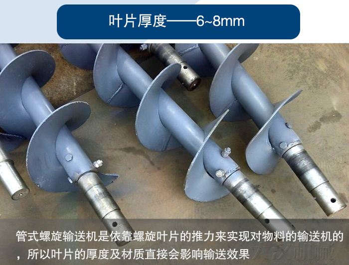 管式螺旋輸送(sòng)機是依靠螺旋葉片的推力來實現對物料的輸送機的(de),所以葉片的(de)厚(hòu)度及材質直接會(huì)影響輸送效(xiào)果,葉片厚度一般在6~8mm左右,也可以根據物料的耐磨程度來加厚,這(zhè)些直接與設備(bèi)的使用壽命掛(guà)鉤的,所以用戶在選型時要特別注意這一點。