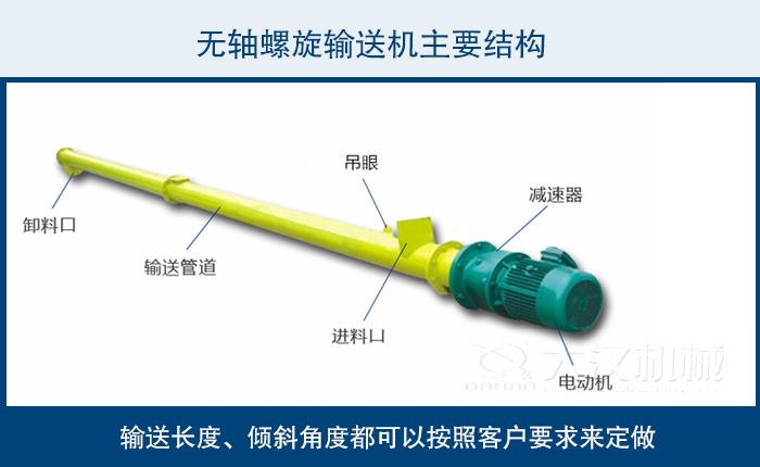 驅動、殼體、襯板、葉片、 支架、蓋板、進料口(kǒu)、出料口,輸送長度、傾斜角度都可以按照客戶要求來定做,不同物料不同輸(shū)送角度羞羞视频网站為您(nín)合理選型!