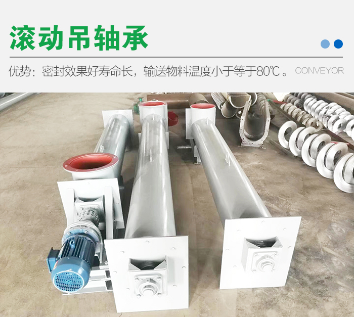優勢:U型螺旋輸送機密封效果好,吊(diào)軸壽命長,輸送物料溫度小於等於80℃。