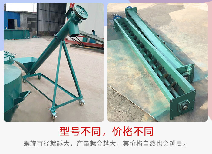 以大漢機械為例,其生產的螺旋給料(liào)機主要有LS螺旋給料機、U型螺旋給料機和無軸螺旋給料機等,不同型號的螺旋給料機的管徑、設計等(děng)也會有所不同, 所以其價格會有所變動,型號越大,螺旋(xuán)直徑就越大,產量就會越大,其價格自然也會越貴。所以對於型號的選擇需(xū)要根據用戶輸送物料來(lái)合理選(xuǎn)擇(zé)。