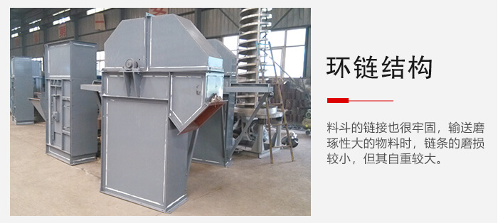 總結(jié):1、環鏈的結(jié)構和製造比較簡單,與(yǔ)料(liào)鬥(dòu)的鏈接也很牢固,輸送磨琢性(xìng)大的物料時,鏈條的磨損較小,但其自重較大。