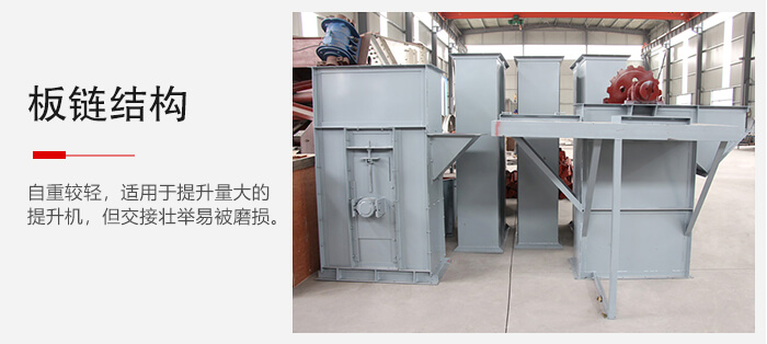 2、板鏈(liàn)結(jié)構(gòu)比較牢固,自重較輕,適用於提升量大的提升機,但交接(jiē)壯舉易(yì)被磨損。