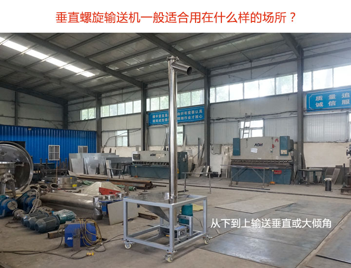 垂直螺旋輸送機采(cǎi)用(yòng)從下到上輸送垂直或大傾角粉末、顆粒及非粘性幹燥物料,那(nà)麽垂直螺旋輸(shū)送機適合(hé)用在哪些場(chǎng)所呢?