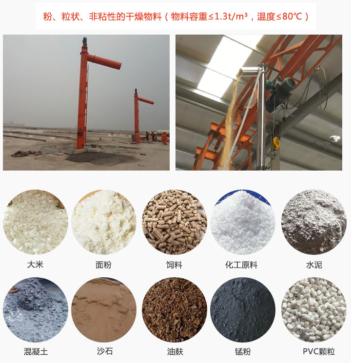 垂直螺旋輸送機可輸送大米,麵粉,飼料、化工(gōng)原料、水泥(ní)、混(hún)凝土等粉、粒狀、非粘性的幹燥物料(物(wù)料容重≤1.3t/m³,溫度≤80℃);在輸送同時也可對物(wù)料進行幹燥和冷卻等功能。