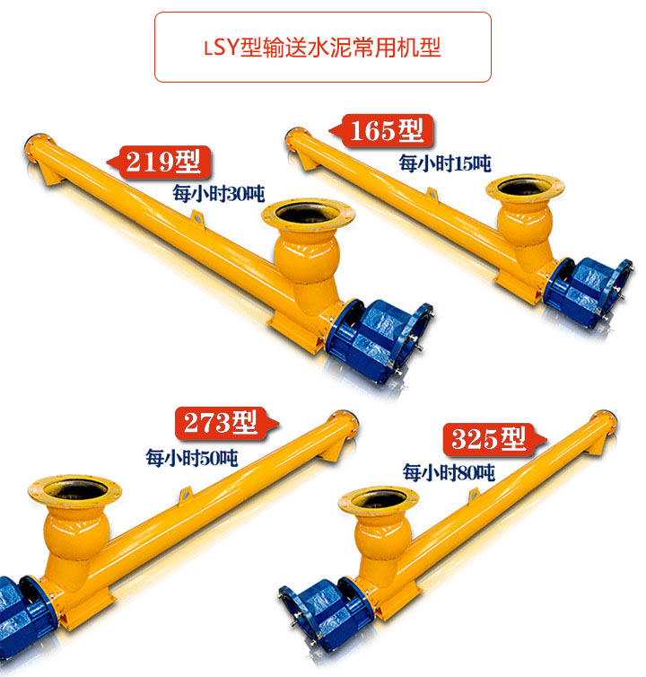 LSY型是(shì)水泥螺旋輸送機是輸送水(shuǐ)泥的專用機型,常(cháng)用的4種型號(hào):