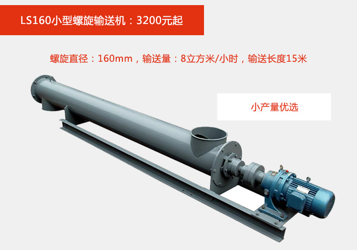 小(xiǎo)型螺旋輸送機有(yǒu)114,159,160,200等4種型號(hào),不同型號對應的輸送量,輸送長度,價格自然(rán)不同;例: