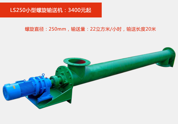 螺旋直徑:250mm,輸送量(liàng):22立方米/小(xiǎo)時,輸送長度20米,可添加電動型(xíng)出料口,方便自(zì)動控製;