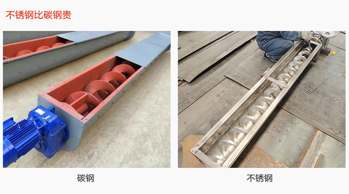 不鏽鋼無軸螺旋輸送機:304/316L不鏽鋼材質,耐腐蝕/耐高溫,不易生鏽,食品、醫藥行業專,價格更貴