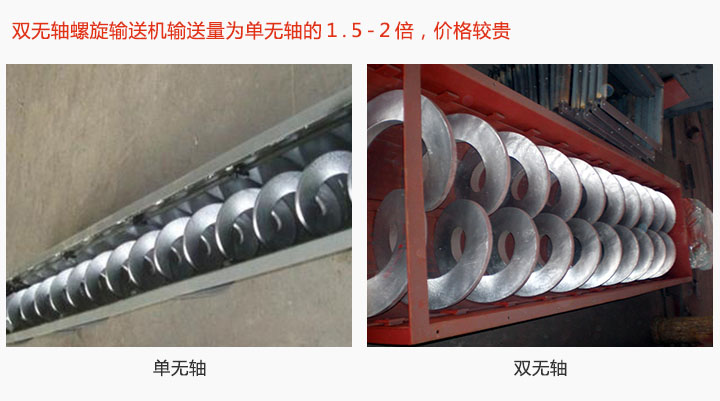 無軸螺旋輸送機型號有WLS150-WLS500等6中規格,型號越大產量越高,價格(gé)越貴;此外還分(fèn)單無(wú)軸(zhóu)和雙無軸兩種:雙無軸螺旋輸送機輸送量為單無軸的1.5-2倍,可輸送物料同時(shí)具備冷卻、攪拌的功能,其價格(gé)比單軸貴。