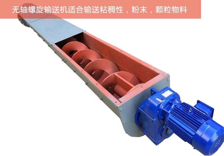 無(wú)軸螺旋輸送機由於其無中心(xīn)軸的設計,所以特別適合輸送粘性,纏繞性,含水分多的物料也可輸送粉末(mò)和顆粒物料,下麵為大家具體說明:
