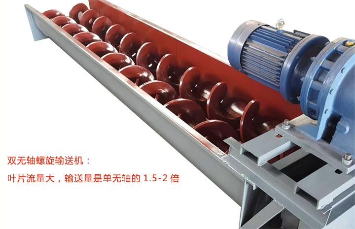此外(wài),想要輸送產(chǎn)量大選雙無軸螺旋輸送機,雙無軸設計,葉(yè)片流量大,輸(shū)送量是單(dān)無軸的1.5-2倍;