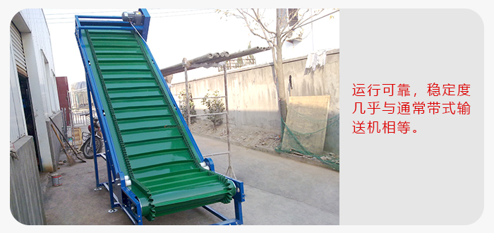 大傾角皮帶輸送機具有通用(yòng)帶式輸送機結構簡單、運行可(kě)靠,維修方便等優點,具有可大傾角(90度(dù)垂直)輸送、結構緊(jǐn)湊、占地少等特點,因(yīn)而是大傾(qīng)角(或垂直)輸送的理想設備。廣泛用於煤炭、冶(yě)金、建築、糧食、化工、電(diàn)力等部(bù)門。通過多年的不懈努力,大(dà)傾角皮帶機(jī)提升高(gāo)度(dù)(高達203m)、大輸送能力(大達6000t/h),在井下(xià)采礦工程、露天采礦、大型自卸船等方(fāng)而都有所采用,並在國內首創用於鋼廠的高爐上料產生了(le)良好的經濟效益。