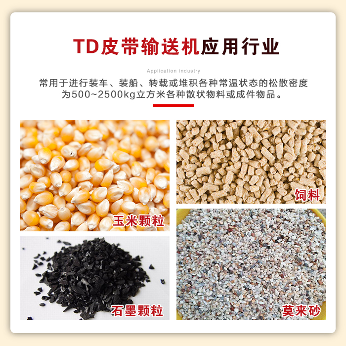 DTⅡ、TD75型皮帶由於輸送量大,結構(gòu)簡單,維護方便,成本低(dī),通用性強等優點,而被廣泛地應(yīng)用在冶金、礦山、煤炭、港口、交通、水電、化工等部門,進(jìn)行裝車、裝船、轉載或堆積各種常溫狀態(tài)的鬆散密度為500~2500kg/m3各(gè)種散(sàn)狀物料或成件物(wù)品。由單機或多機組合(hé)成運輸係統來輸送(sòng)物料,根據工藝要求可布置成水平或傾斜的形式,DTⅡ型皮帶輸送機除了可滿足水平或傾斜輸送(sòng)要求外,還可(kě)采用帶(dài)凸弧段、凹弧段與直線段組合的(de)輸送形式。輸(shū)送機允許輸送的(de)物(wù)料塊度取決於帶寬、帶速、槽角和傾角,也取(qǔ)決(jué)於大塊物料出(chū)現的頻率。該輸送機適用的工作環境溫度一般為-25~+40℃。我公司還生(shēng)產輕型皮帶輸送機和移動式輸送機。