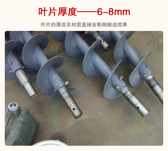 管型螺旋輸送機是依靠螺旋葉片的推力(lì)來實現對物料的輸送機的,所以葉片(piàn)的厚度及材質直(zhí)接會影響輸送效果,葉片厚度一般在6~8mm左右,也可以根據(jù)物料的耐(nài)磨程度來加厚,這些直(zhí)接與設備的使用壽命掛鉤的,所以用戶(hù)在選型時要特別注意這一點。