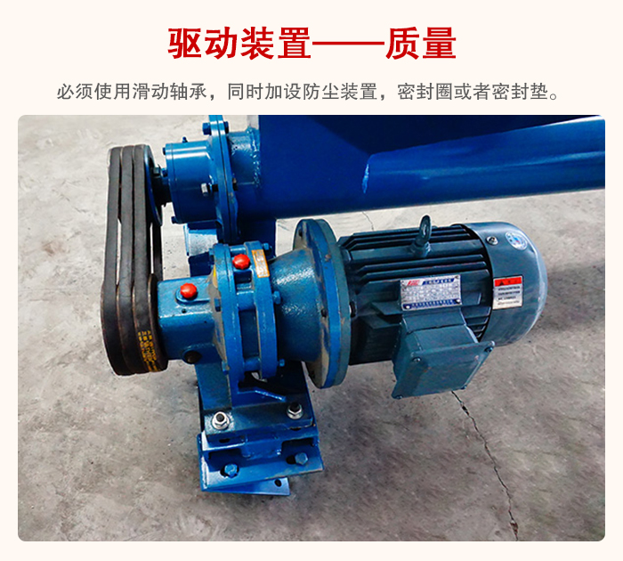 管型(xíng)螺旋輸送機必須使用滑動軸承,同時加設防塵裝置,密封圈或者密封墊(diàn),這樣不會導致