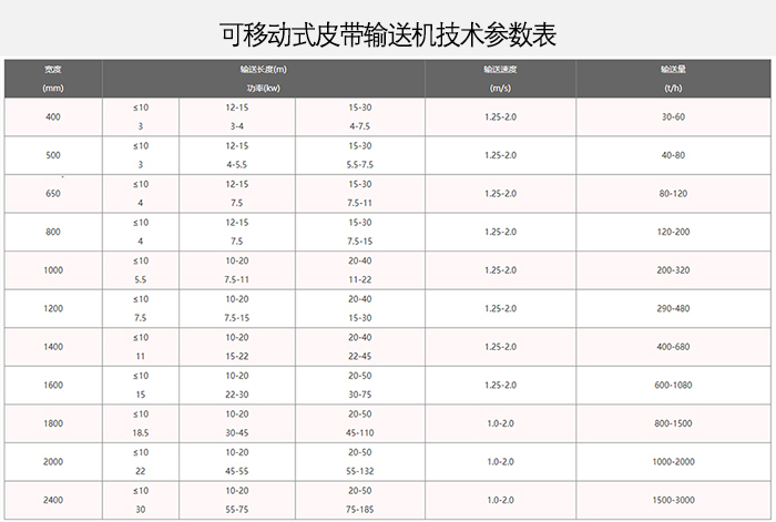 可(kě)移動(dòng)式皮帶輸送機(jī)具有快、慢(màn)兩種速度、以適應散運、包裝的不(bú)同要(yào)求,提(tí)高了設(shè)備的利用,發揮了一機多用的性能(néng)。移動式皮帶輸送機有電動、手動升降兩種型式有5米(mǐ)、8米、10米、12米、15米(mǐ)、18米、20米等規格。