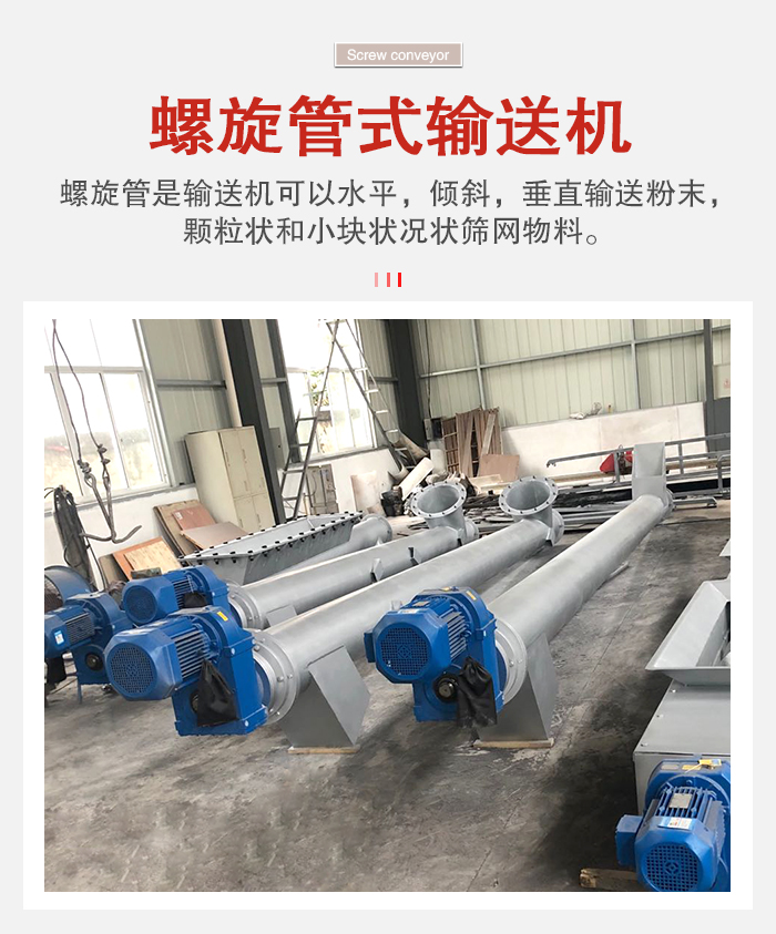 螺旋管是輸送機可以(yǐ)水平,傾斜,垂直輸送粉末,顆粒狀和小塊狀況狀篩網物料,廣泛用於糧食,建材,化工,機械製造,交通運輸業等行業(yè)。