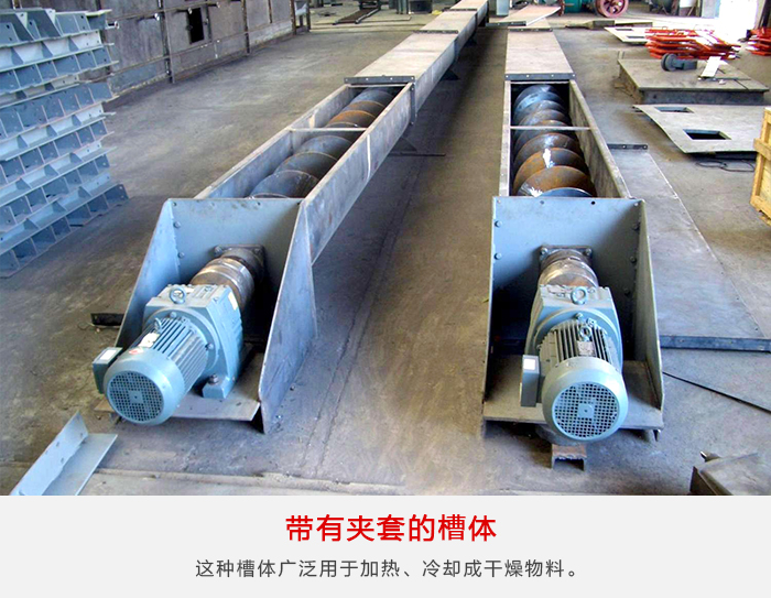 煤粉螺旋輸送機這種形式(shì)的槽體由加工好的夾(jiá)套連續地焊接在普通結構的槽體上,其上焊有換熱介質的進出口管。這種槽(cáo)體廣泛用於加熱(rè)、冷卻成幹燥物料。夾套中的隔板(bǎn)使循環水(shuǐ)較好地分配麵強化熱交換效果。