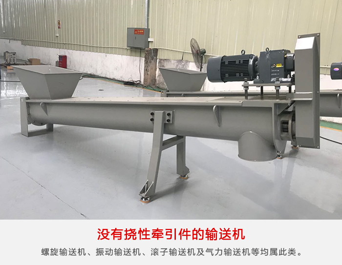 螺旋輸送機、振動輸送機、滾子(zǐ)輸送機及氣力輸送機等均屬此類。其工作特點是使物品與推(tuī)動件分別運(yùn)動。推動件作旋轉運作(滾子輸送機(jī))或往複運動(振動輸送機)時,依靠物品(pǐn)與承載件間的摩擦力或慣性力,使物品向前運動,而推運件自身仍保持或(huò)回複到原來位置。
