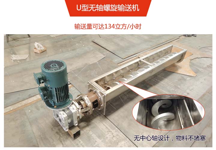 U型(xíng)無軸螺旋輸送機也叫U型(xíng)無軸螺旋給(gěi)料(liào)機,采用無中心軸設(shè)計(jì),通常(cháng)適用於城市汙水廠、 水質淨化廠、垃圾處理廠等輸送機械格柵(shān)除汙機(jī)攔截下來的柵渣、壓榨機、壓濾機處理後的泥餅等物料。