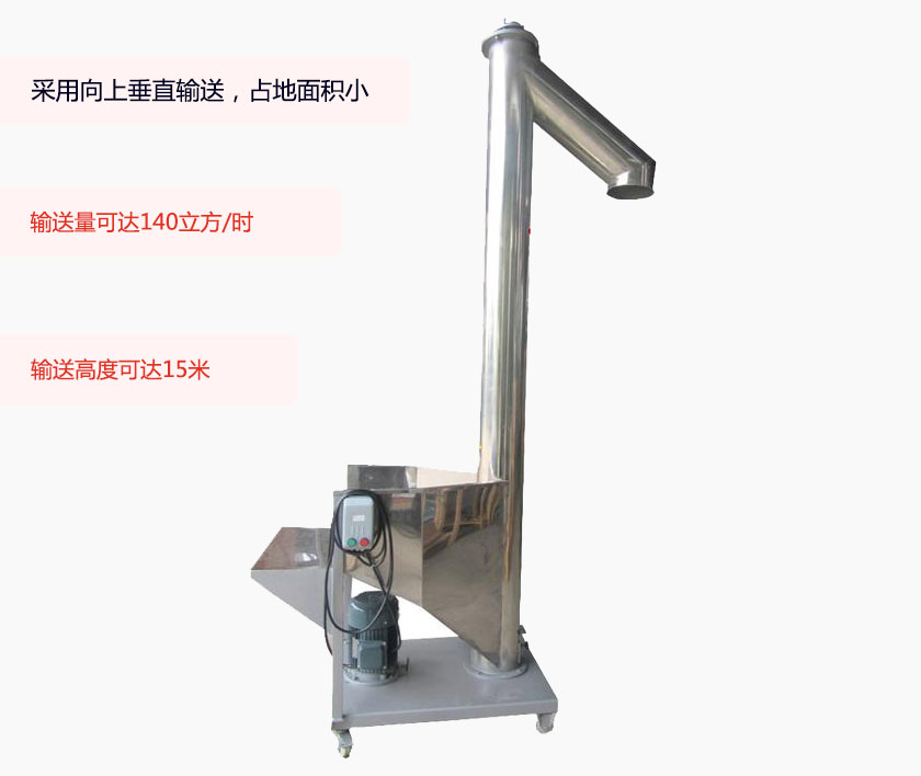 垂直管式螺旋(xuán)輸(shū)送(sòng)機利(lì)用(yòng)旋轉的螺旋葉片將物料沿螺旋體位移方向向前推移,物料(liào)在輸送過程中受到旋轉(zhuǎn)的螺(luó)旋體的離心力,以及自(zì)身重力與機殼(ké)之間(jiān)的摩擦力的作用,從而達到向上輸送的效果(guǒ)。