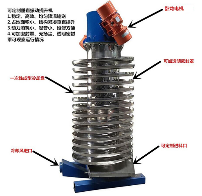 垂(chuí)直振動提升機也叫(jiào)做DZC垂直振動輸送機,是一種新型的垂直振動提升和輸送設(shè)備,本機對一切顆粒狀、塊狀(zhuàng)、粉狀的(de)固體(tǐ)物料(粘度不)都可以輸(shū)送。廣泛應用於礦山、冶金、機械、建(jiàn)材、化工、橡膠、醫藥、電力、糧食、食品等行業的塊狀、粉狀和短纖維(wéi)狀固體物料的提升(shēng),DZC型振動輸送機在(zài)向上提升物料的(de)同時,還可(kě)以完成對物料的幹燥(zào)和(hé)冷卻(què)。分開槽式(shì)、封閉式兩種(zhǒng)結構,並可根據不同的工藝要求,設計物料顆粒分級作(zuò)用的篩選提升機及設計易燃易爆物料的提升機。